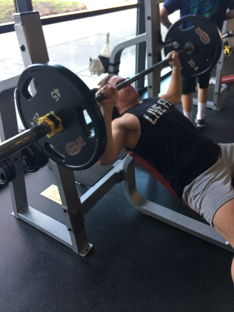 Exercise #1- Bench press4x12. Bench press is the most universal exercise for your chest. It hits almost every part of your chest. You want to have very good form so you don’t get injured. You want hands about shoulder width part and wrist straight. When going down feel a good stretch in your chest and when you push up squeeze your chest